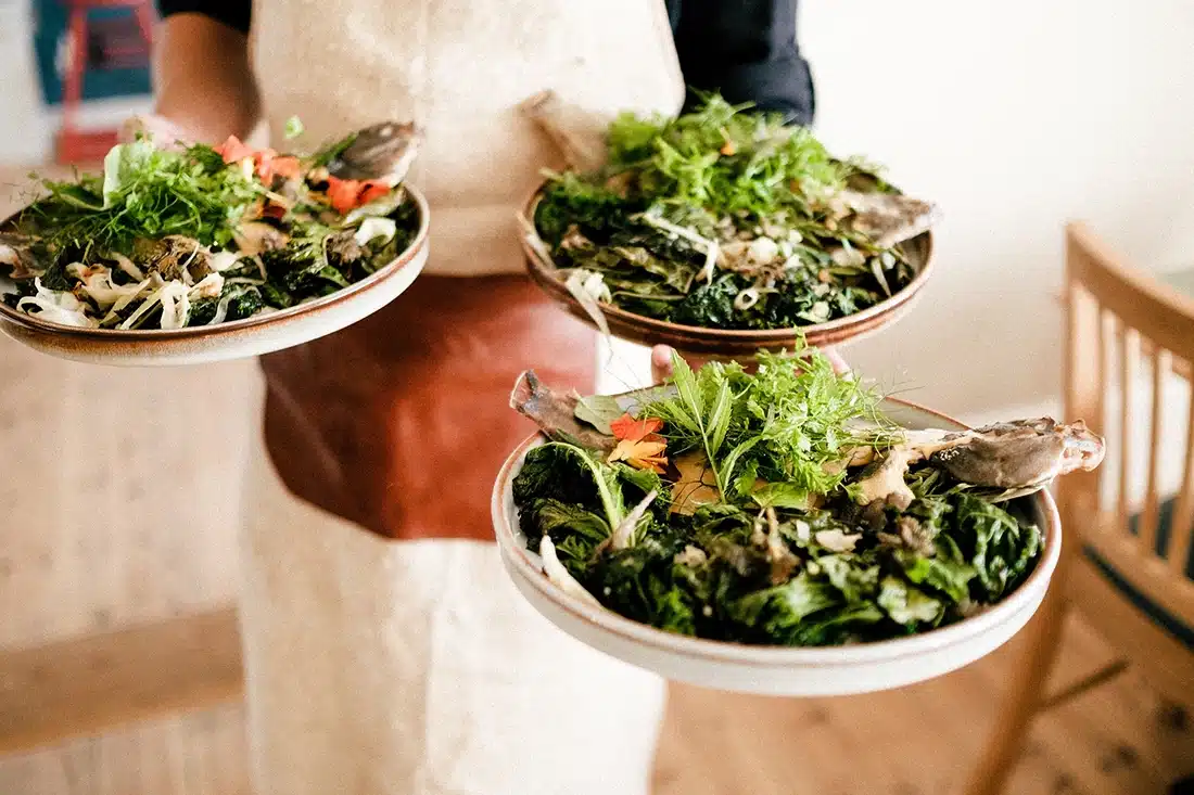 Vores køkken er baseret på samarbejdet med lokale gårde på Nordbornholm, der forsyner os med sæsonens grønt.
